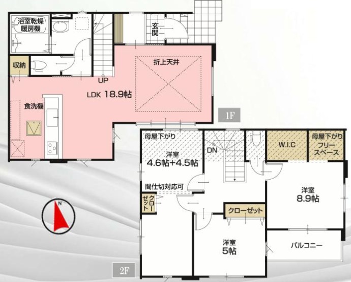 | 間取 | 3LDK + WIC付き・間仕切り対応可能・フリースペース (LDK18.9帖、洋室10.1帖、洋室8.9帖、洋室5帖) | ||
