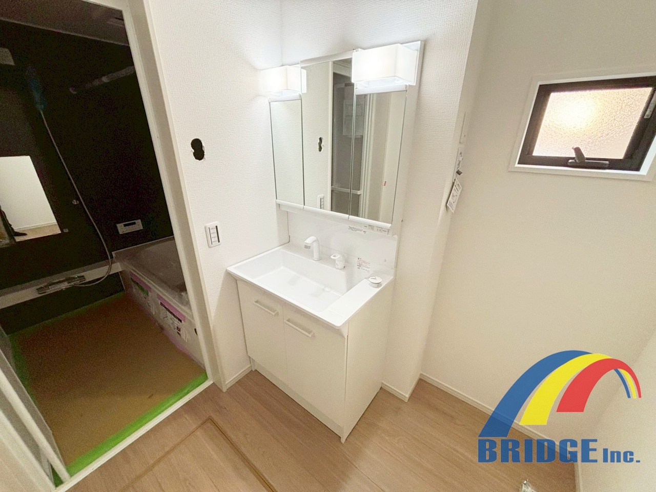 朝の身支度が快適な独立洗面台♪裏は収納になっており、お化粧道具もすっきり収納が出来ます! 同社同等仕様施工例