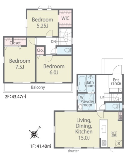 | 間取 | 3LDK + W.I.C (LDK15.0帖、洋室7.5帖、洋室6.0帖、洋室5.25帖) | ||