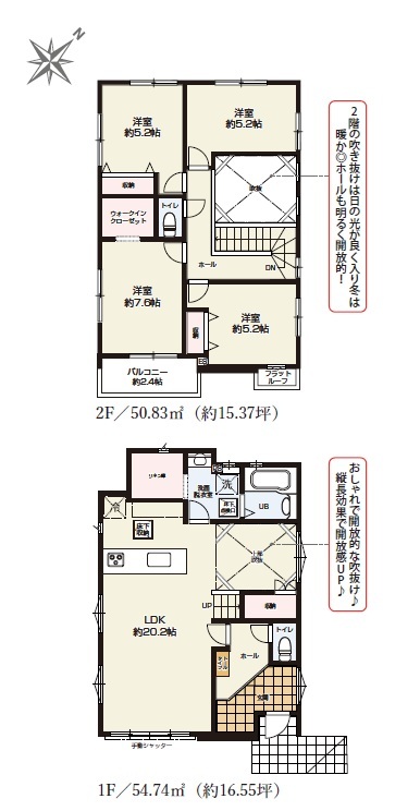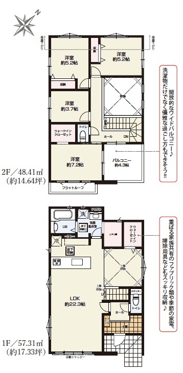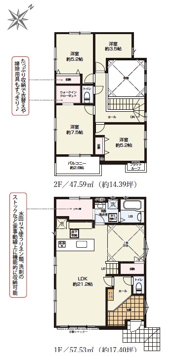 | 間取 | 4LDK~4LDK + WIC、リネン庫、リビング収納 (LDK21.2帖、洋室7.5帖、洋室5.2帖、洋室5.2帖、洋室.5帖) | ||