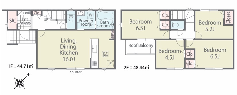 - 駐車2台可能で、大容量のシューズインクローク、ルーフバルコニー。