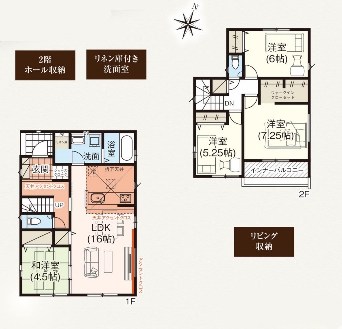 | 間取 | 4LDK (LDK16帖、和室4.5帖、洋室7.25帖、洋室6帖、洋室5.25帖) | ||