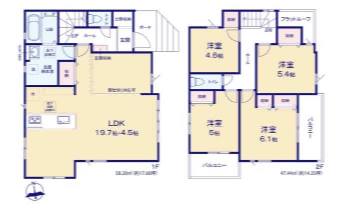 | 間取 | 4LDK + 土間収納 (LDK24.2帖、洋室6.1帖、洋室5.4帖、洋室5帖、洋室4.6帖) | ||