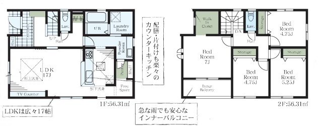| 間取 | 4LDK (LDK17帖、洋室7帖、洋室5.25帖、洋室4.75帖、洋室4.75帖) | ||