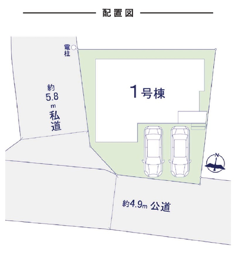 | 接道 | 南側4.9M公道に接道 西側5.8M私道に接道 |