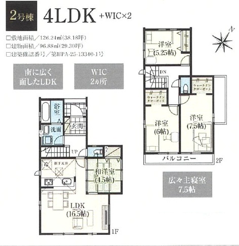 | 間取 | 4LDK (LDK16.5帖、和室4.5帖、洋室7.5帖、洋室6帖、洋室5.25帖) | ||