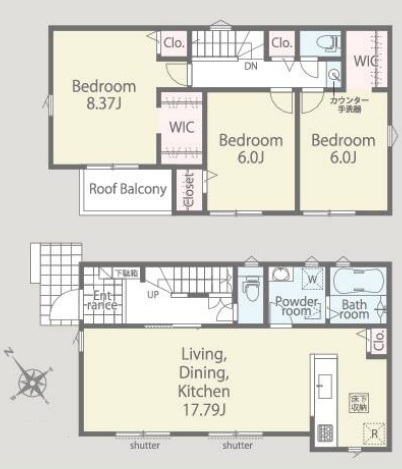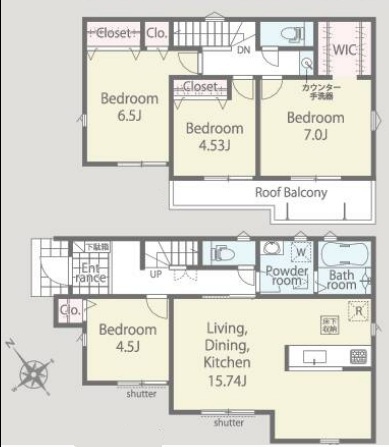 - 駐車2台可能で、WIC、階段下収納がありルーフバルコニー付き。