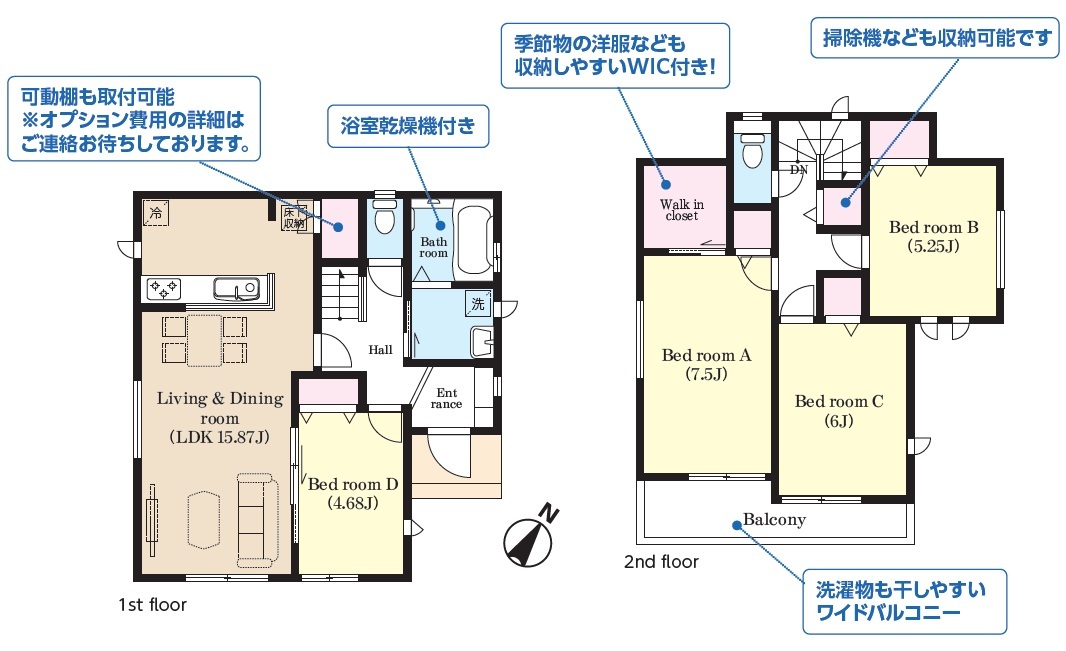 | 間取 | 4LDK (LDK15.87帖、洋室4.68帖、洋室7.5帖、洋室6帖、洋室5.25帖) | ||