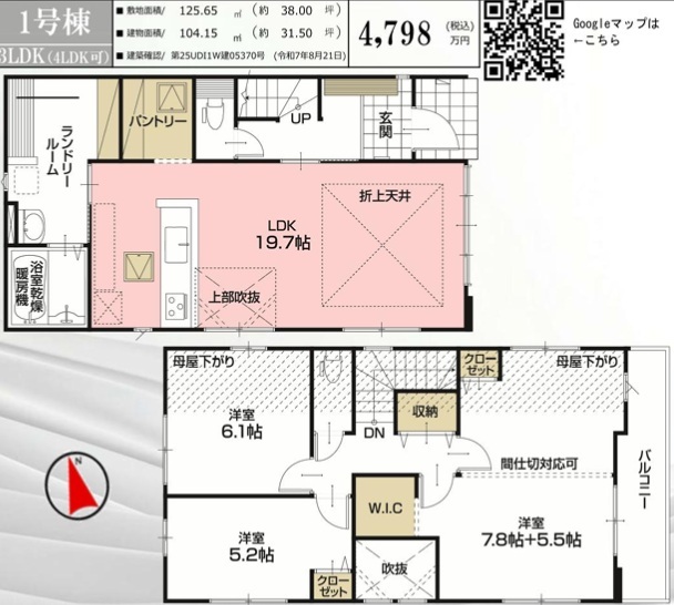 | 土地面積 | 125.65m² 公簿 (私道13m²別に有) | ||