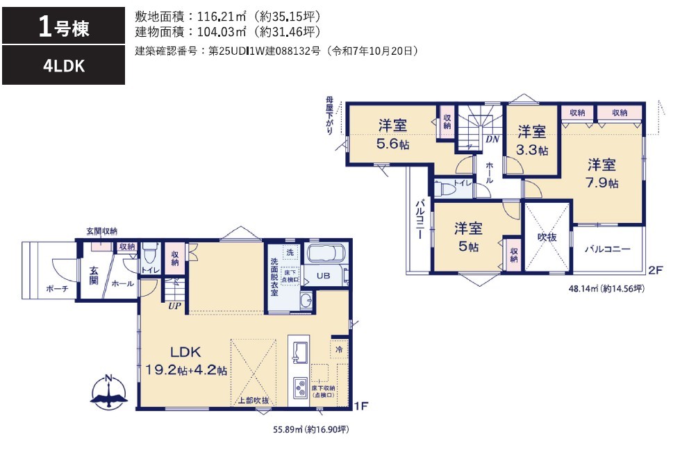 | 建築確認番号 | 第25UDI1W建088132号 | 駐車スペース | 2台(カースペース:並列) |