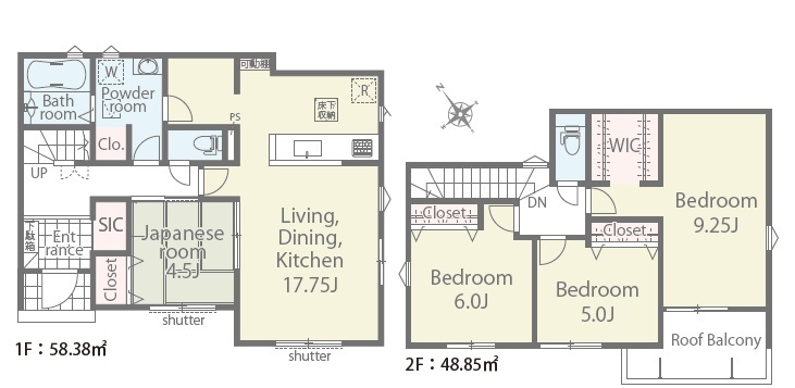 | 間取 | 3LDK + WIC、SIC、和室 (LDK17.75帖、和室4.5帖、洋室5帖、洋室9.25帖、洋室6帖) | ||