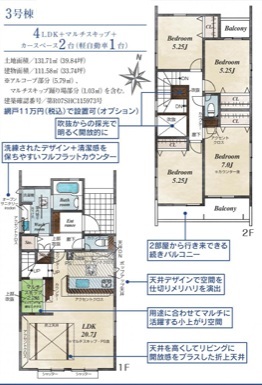 | 建物面積 | 110.66m² ~ 116.55m² 公簿 | ||