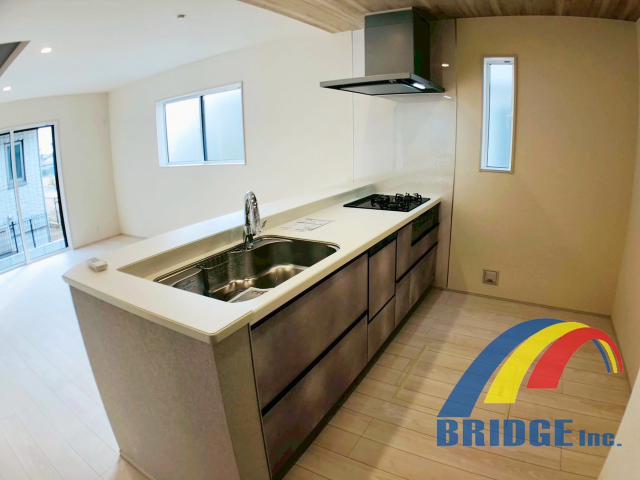 2号棟 料理をしながらリビング全体を見渡せるカウンターキッチン