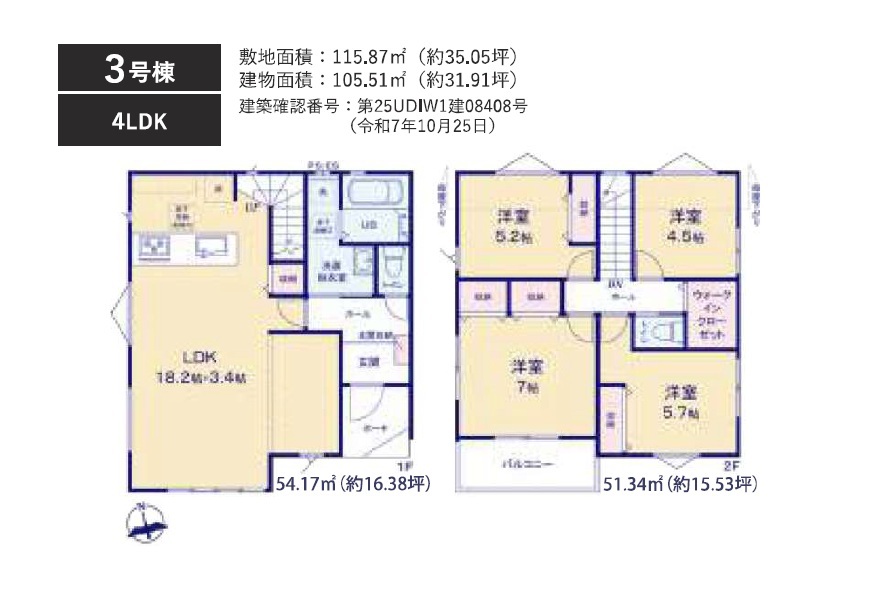 | 建築確認番号 | 第25UDI1W建08406号、他 | 駐車スペース | 2台(カースペース:並列) |