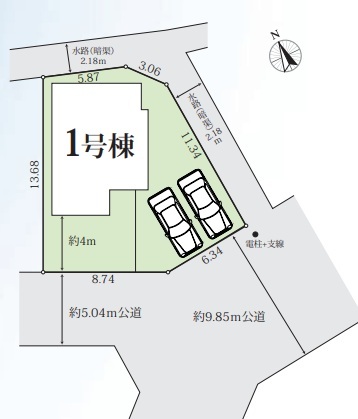 | 接道 | 南西側5.04M公道に接道 南側9.85M公道に接道 |