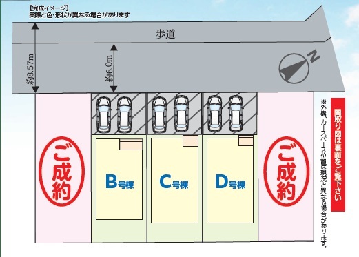 - ※完成予想図はいずれも外構、植栽、外観等実際のものとは多少異なることがあります。