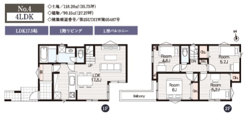 | 間取 | 4LDK (LDK17.5帖、洋室6帖、洋室5.2帖、洋室5.2帖、洋室4.6帖) | ||