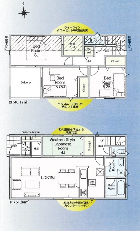 | 間取 | 4LDK + WIC (LDK18帖、洋室8帖、洋室5.75帖、洋室5.25帖、和室4帖) | ||