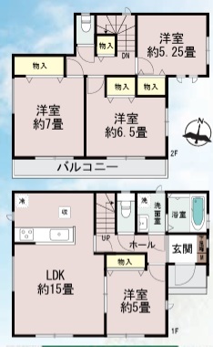 | 間取 | 4LDK (LDK15帖、洋室5帖、洋室7帖、洋室6.5帖、洋室5.25帖) | ||