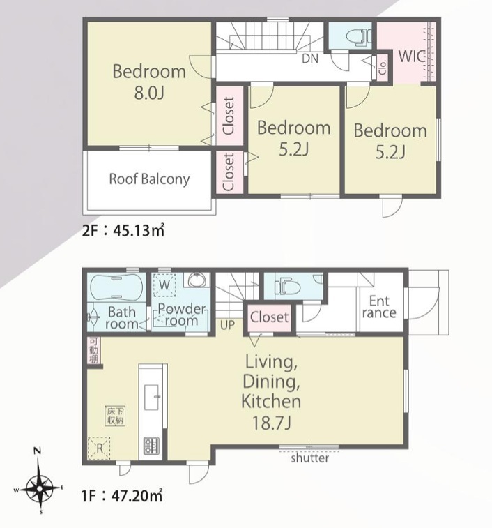 | 間取 | 3LDK~3LDK (LDK18.7帖、洋室8.0帖、洋室5.2帖、洋室5.2帖) | ||