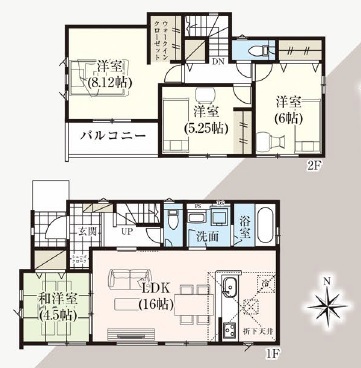 | 間取 | 4LDK (LDK16帖、和室4.5帖、洋室8.12帖、洋室6.0帖、洋室5.25帖) | ||