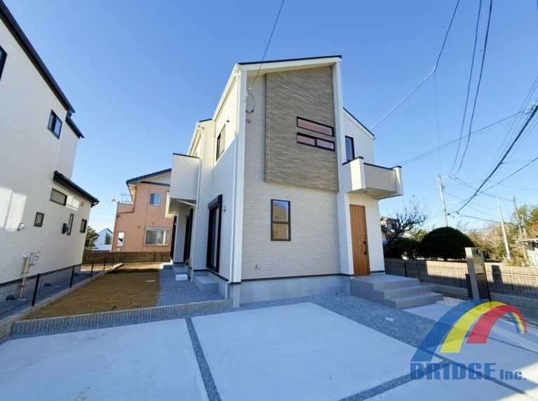 2号棟 駐車2台可能で、南向きの広々リビング 広々バルコニー付き。 リビング収納、階段下収納、土間収納付き。 脱衣室も広々ゆったり、家事も捗ります。 是非、船橋市で新築一戸建をお探しの方はお気軽にお問い合わせ下さい。 お待ちしております。 外観 同社同等仕様施工例