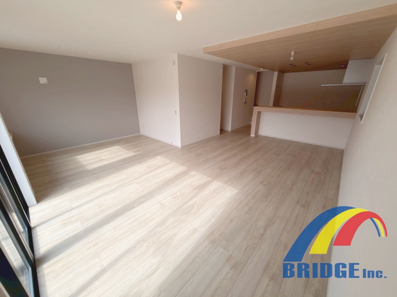 広々24.7帖の開放感がありアクセントクロスでお洒落なリビング♪使い勝手の良いカフェカウンター付き