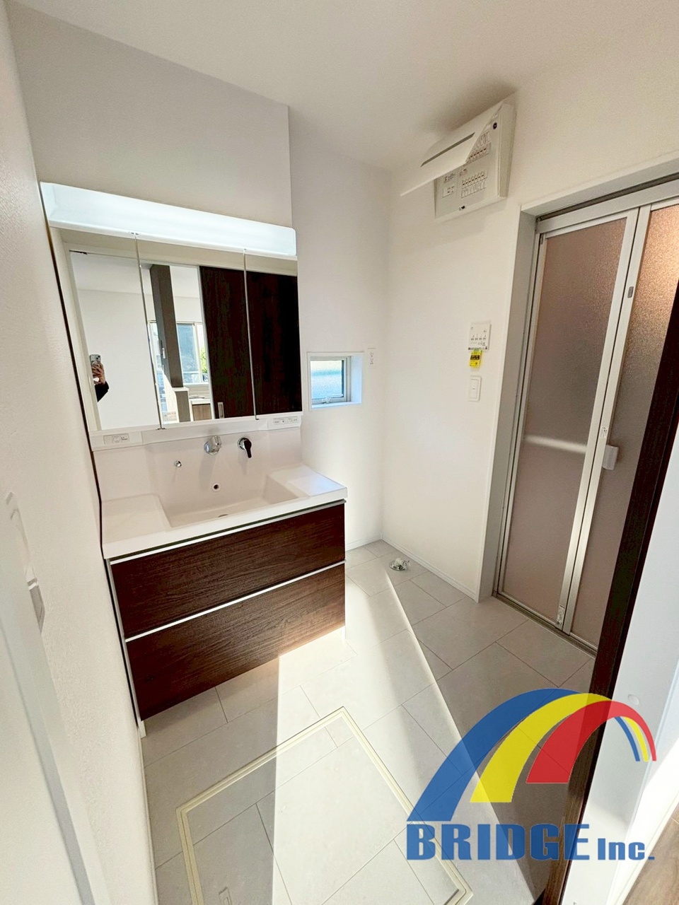 朝の身支度が快適な独立洗面台♪裏は収納になっており、お化粧道具もすっきり収納が出来ます!