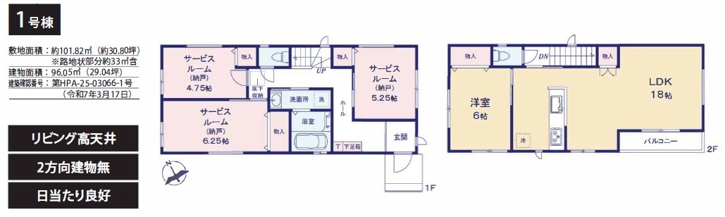 | 間取 | 1LDK + サービスルーム×3 (LDK18帖、洋室6帖、S6.25帖、S5.25帖、S4.75帖) | ||