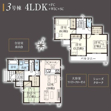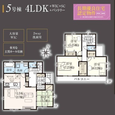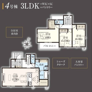 | 間取 | 3LDK~4LDK + W.I.C×2、SC、パントリー (LDK17帖、和室5.25帖、洋室8.25帖、洋室6.25帖、洋室6帖) | ||