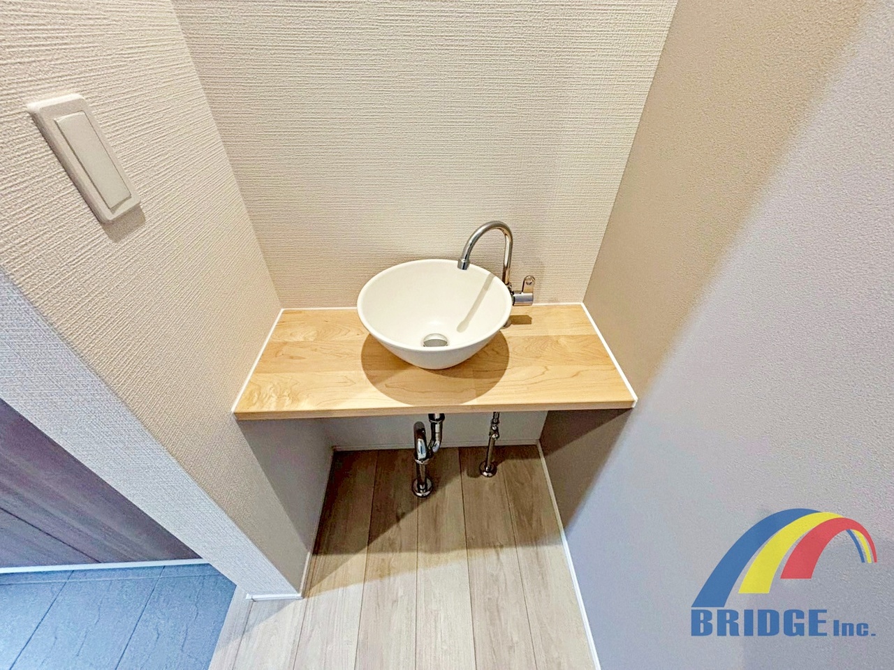 1号棟 朝の身支度が快適な独立洗面台♪裏は収納になっており、お化粧道具もす っきり収納が出来ます! 同社同等仕様施工例