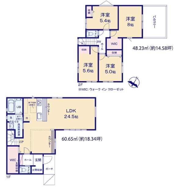 | 間取 | 4LDK~4LDK + WIC、土間収納 (LDK24.5帖、洋室8帖、洋室5.6帖、洋室5.4帖、洋室5帖) | ||