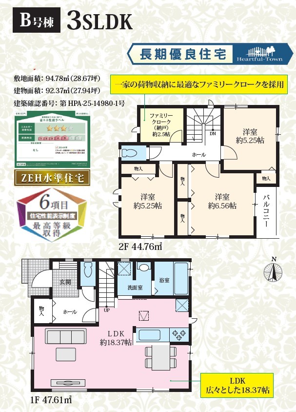 | 建築確認番号 | 第HPA-25-14979-1号、他 | 駐車スペース | 1台(カースペース) |