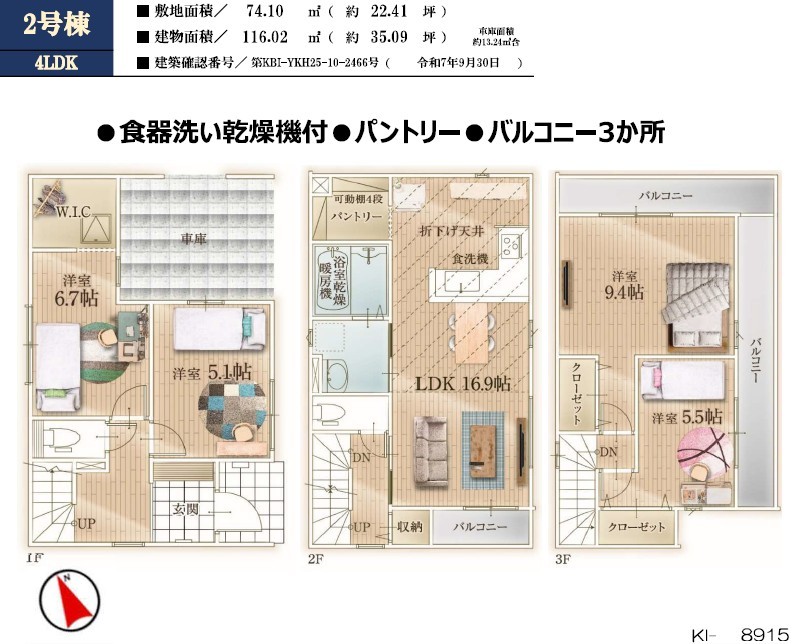| 建築確認番号 | 第KBI-YKH25-10-2466号 | 駐車スペース | 2台 |