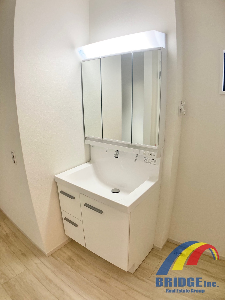 朝の身支度が快適な独立洗面台♪裏は収納になっており、お化粧道具もすっきり収納が出来ます!