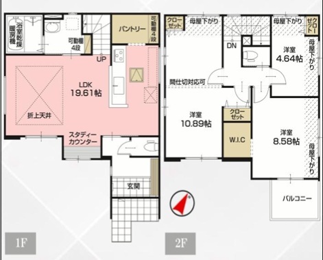 | 間取 | 3LDK + 間仕切り可能 (LDK19.61帖、洋室10.89帖、洋室8.58帖、洋室4.64帖) | ||