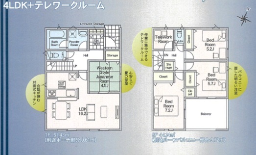 | 間取 | 4LDK + テレワークルーム (LDK16.2帖、和室4.5帖、洋室7.2帖、洋室5.7帖、洋室5.2帖) | ||