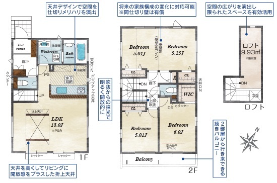 | 間取 | 4LDK + W.I.C、ロフト (LDK18.0帖、洋室6.0帖、洋室5.25帖、洋室5.0帖、洋室5.0帖) | ||