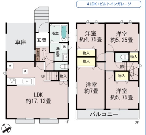 | 間取 | 4LDK (LDK17.12帖、洋室7帖、洋室5.75帖、洋室5.25帖、洋室4.75帖) | ||