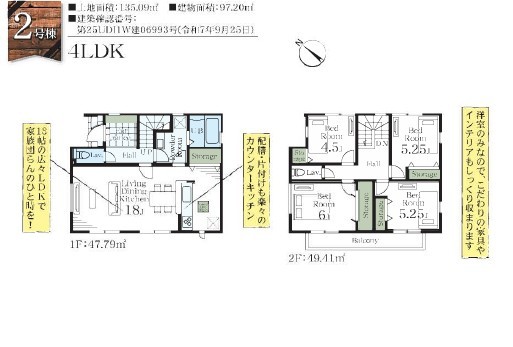 | 間取 | 4LDK + リビング収納 (LDK18帖、洋室6帖、洋室4.5帖、洋室5.25帖、洋室5.25帖) | ||