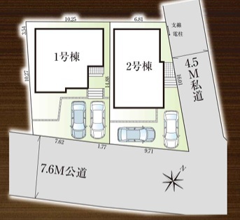 | 接道 | 南東側7.69M公道に接道 北東側4.5M私道に接道 |