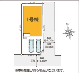 | 接道 | 東側4M私道に接道 南側4.1M公道に接道 |