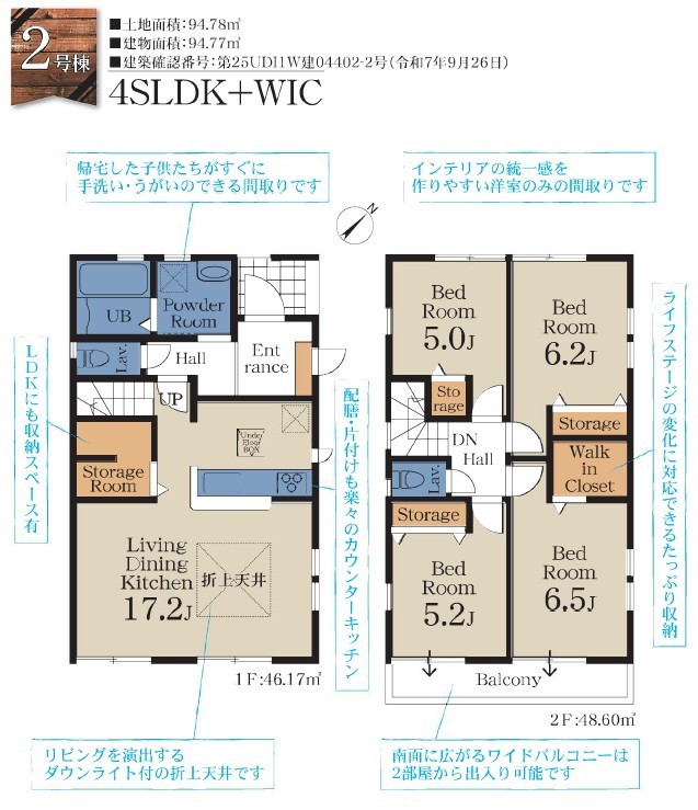 | 建築確認番号 | 第25UDI1W建04401-2号、他 | 駐車スペース | 2台(カースペース:並列) |
