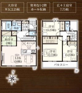 | 間取 | 4LDK + W.I.C、和室 (LDK16帖、和室3帖、洋室7.75帖、洋室5.25帖、洋室5.25帖) | ||