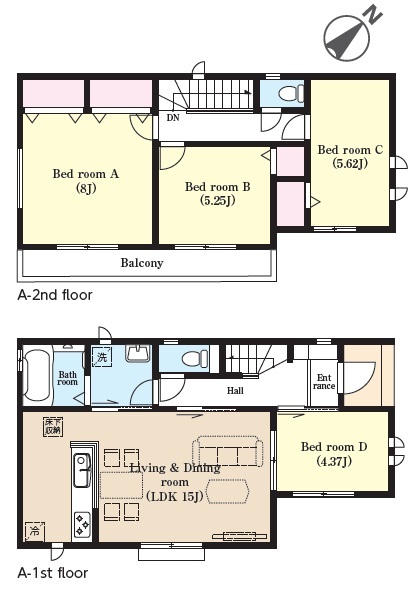 | 間取 | 4LDK (LDK15帖、洋室8帖、洋室5.62帖、洋室5.25帖、洋室4.37帖) | ||