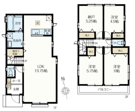 | 間取 | 3SLDK (LDK19.75帖、洋室6帖、洋室5.75帖、洋室4.5帖、S5.25帖) | ||