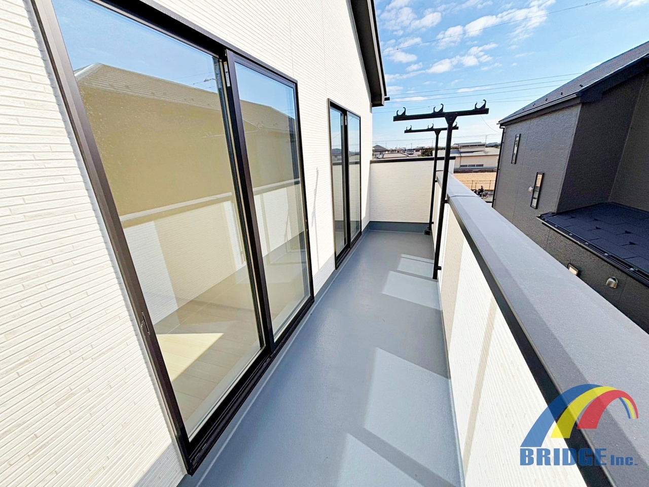 1号棟 広々したバルコニーではお洗濯物を干すのも楽しくなりそうですね!
