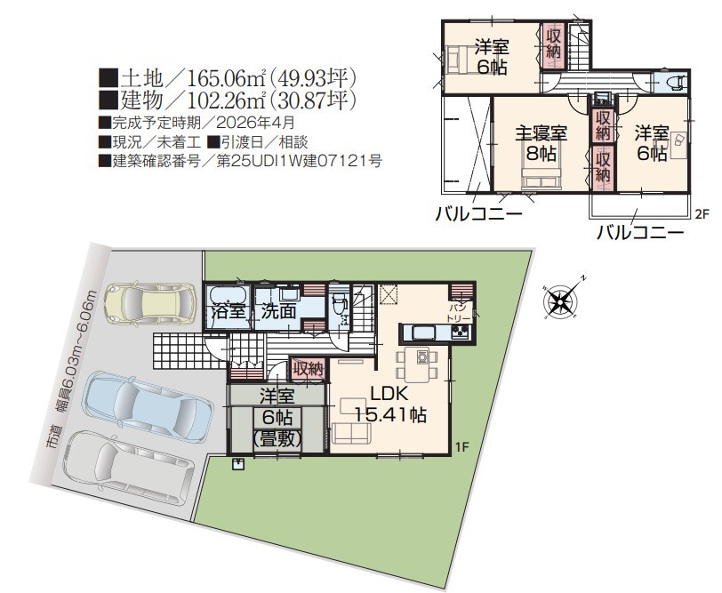 | 建築確認番号 | 第25UDI1W建07121号 | 駐車スペース | 3台(カースペース:並列) |