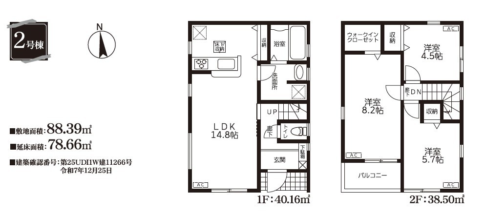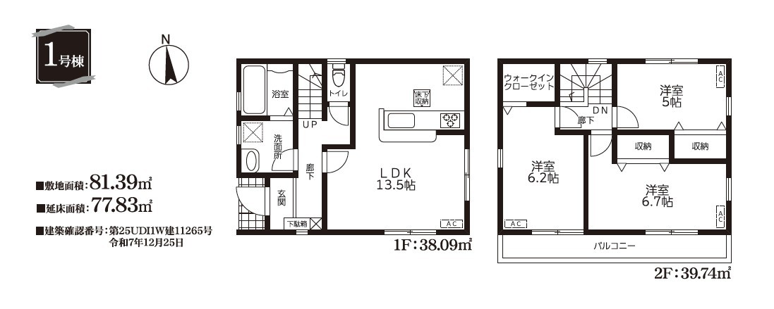 | 建築確認番号 | 第25UDI1W建11265号、他 | 駐車スペース | 1台(カースペース) |