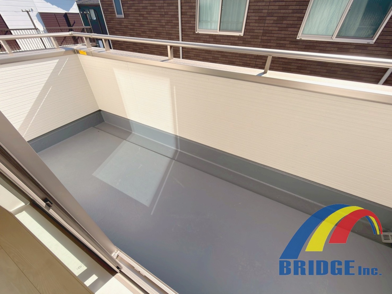 1号棟 広々したバルコニーではお洗濯物を干すのも楽しくなりそうですね!